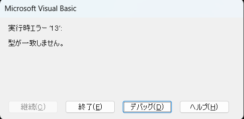『型が一致しません』と突然エラーが発生してしまった場合の対処法
